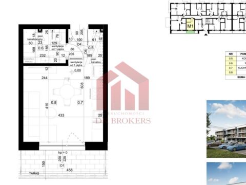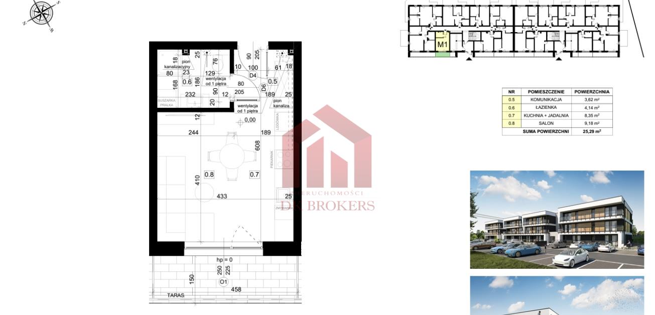 Oferta dotyczy mieszkania na parterze o powierzchni 25,29 mkw z tarasem 6mkw.