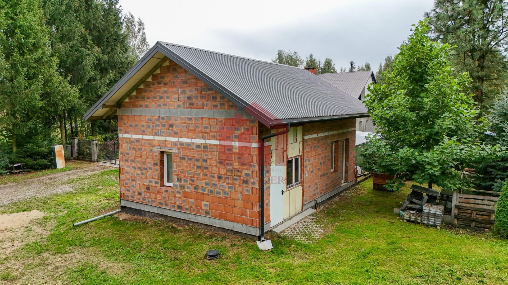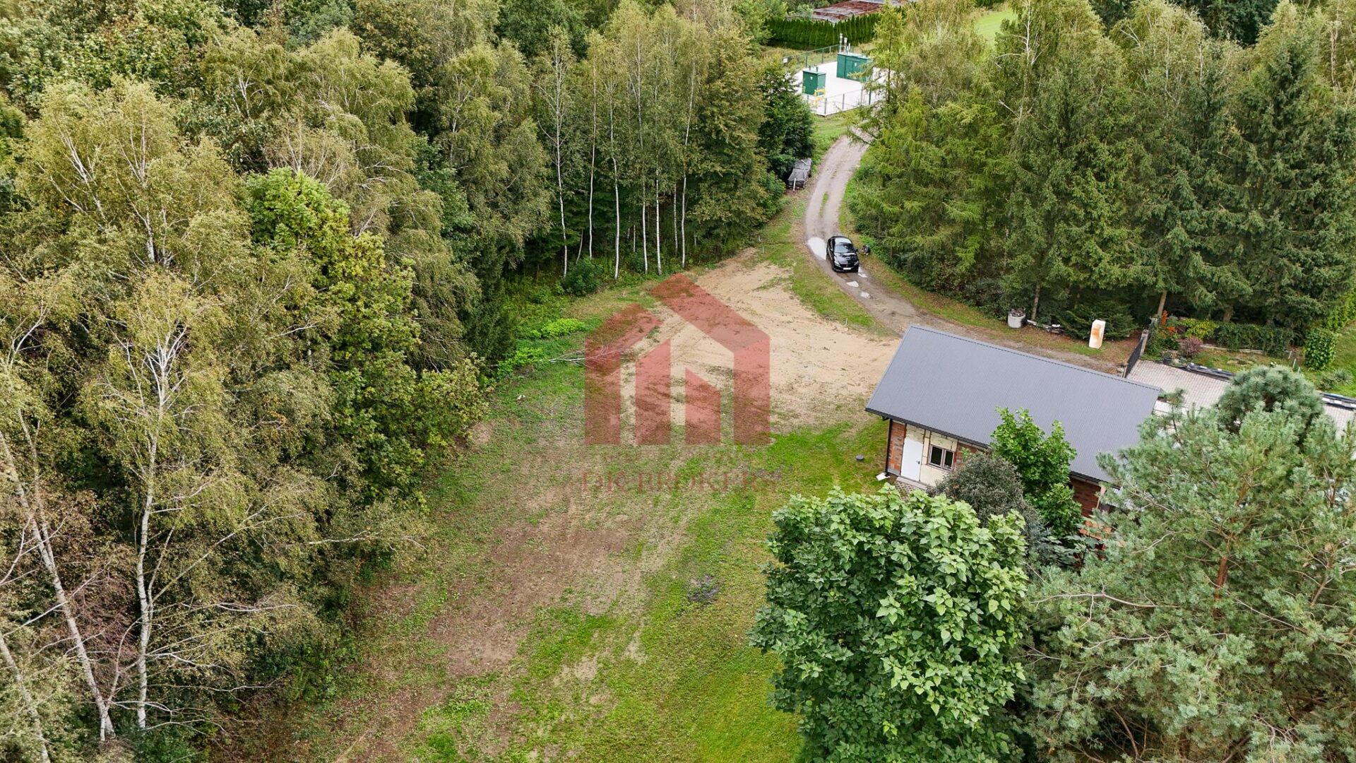 Dojazd do nieruchomości jest bezproblemowy, dzięki udziałowi w drodze. Położenie domu na końcu drogi gwarantuje minimalny ruch samochodowy oraz wysoki komfort zamieszkania.