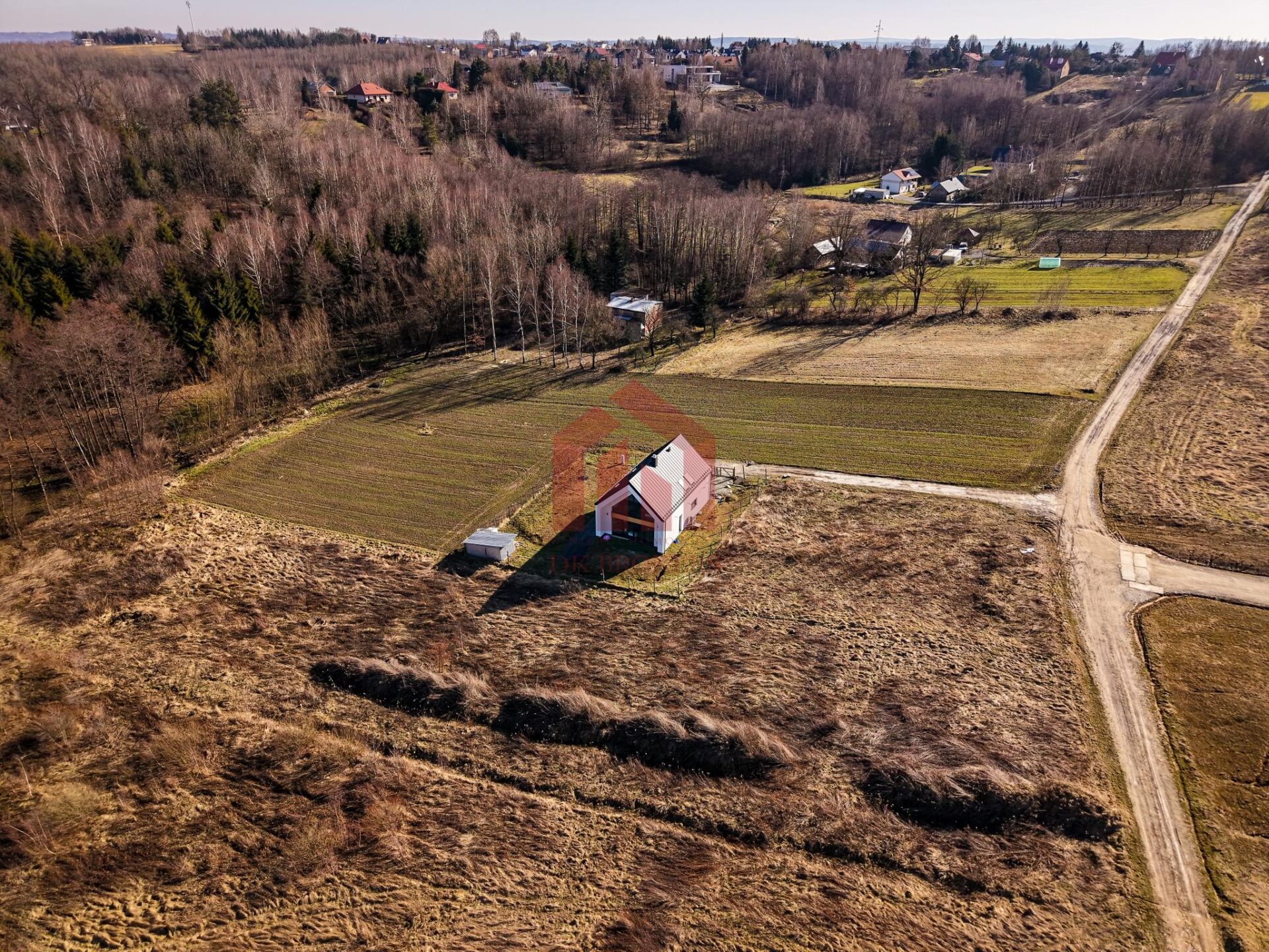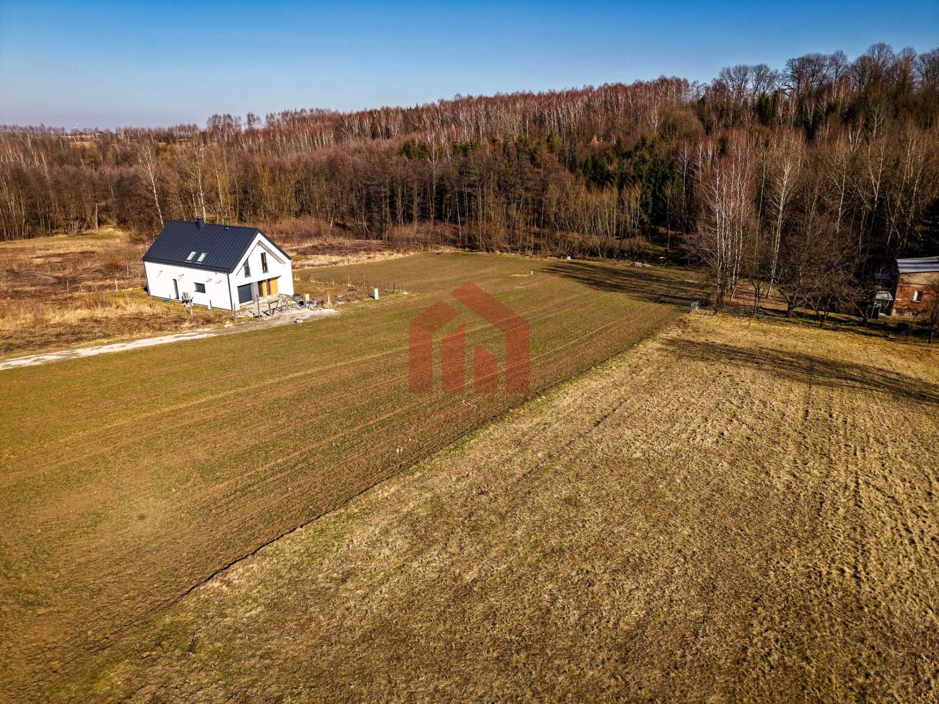 Działka jest uzbrojona w wodę z sieci, kanalizację sanitarną oraz prąd. Gaz znajduje się w odległości ok. 60 metrów od działki. Działka posiada Prawomocną Decyzję o Warunkach Zabudowy na dom jednorodzinny. Dojazd zapewniony jest poprzez drogę gminną, ostatni odcinek ok. 30 metrów jako udział w drodze. Stan prawny całkowicie uregulowany.