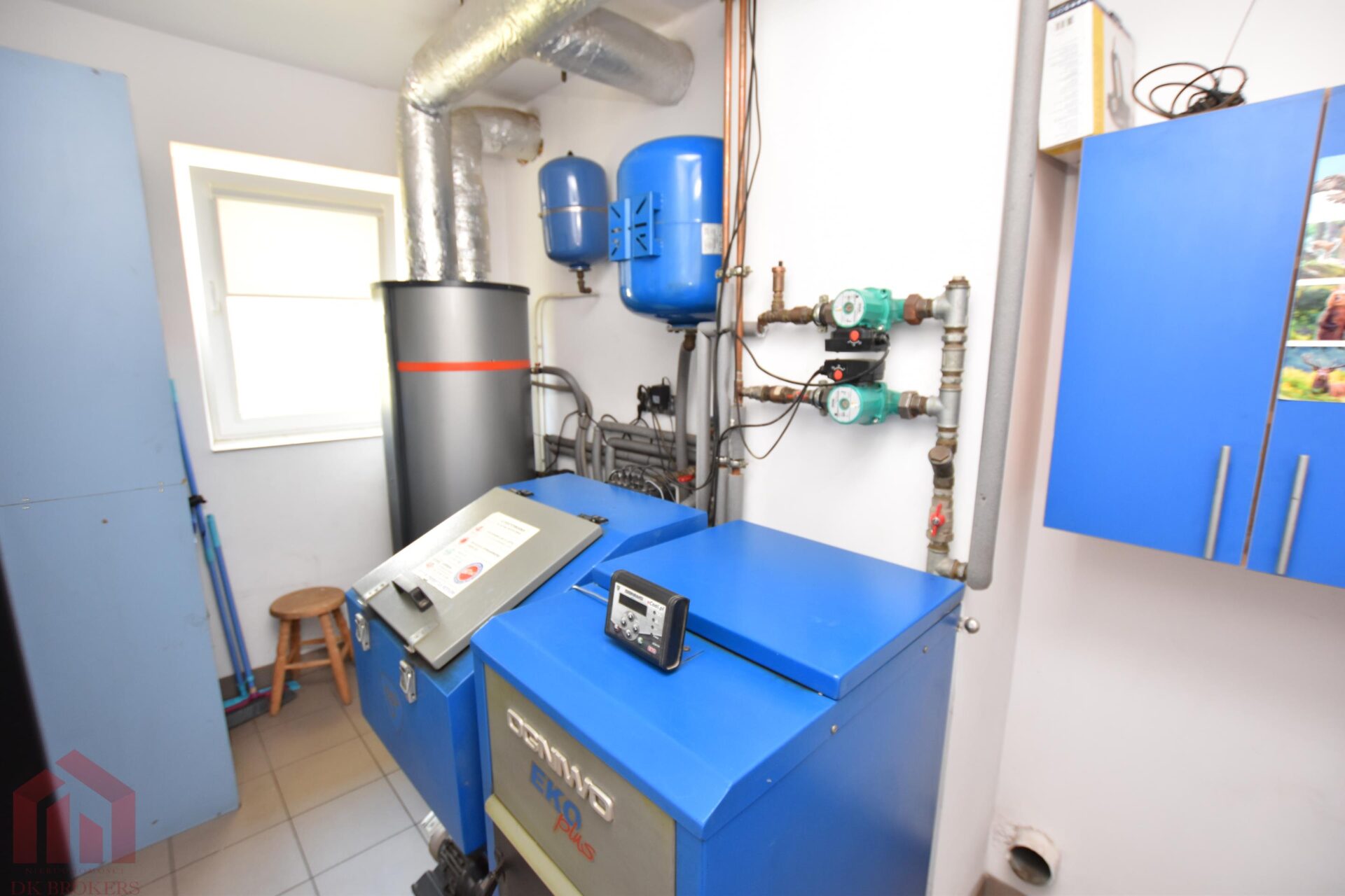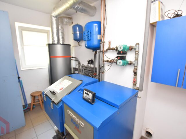 Dom ogrzewany jest ekogroszkiem oraz kominkiem. Dodatkowo zamontowana jest pompa ciepła jedna z najbardziej efektywnych i ekologicznych systemów ogrzewania budynków i przygotowywania ciepłej wody użytkowej. Niezależnie od pory roku wykorzystuje ona energię słoneczną zgromadzoną w ziemi, wodach gruntowych, powietrzu atmosferycznym oraz energię geotermalną. Te źródła energii noszą nazwę dolnych źródeł ciepła. Dzięki pompie ciepła wykorzystującej opisane wcześniej źródła ciepła, możecie Państwo ogrzewać budynek i wodę użytkową oszczędzając energię i chroniąc środowisko naturalne. Zamontowany został również uzdatniacz wody, klimatyzacja i ogrzewanie podłogowe.