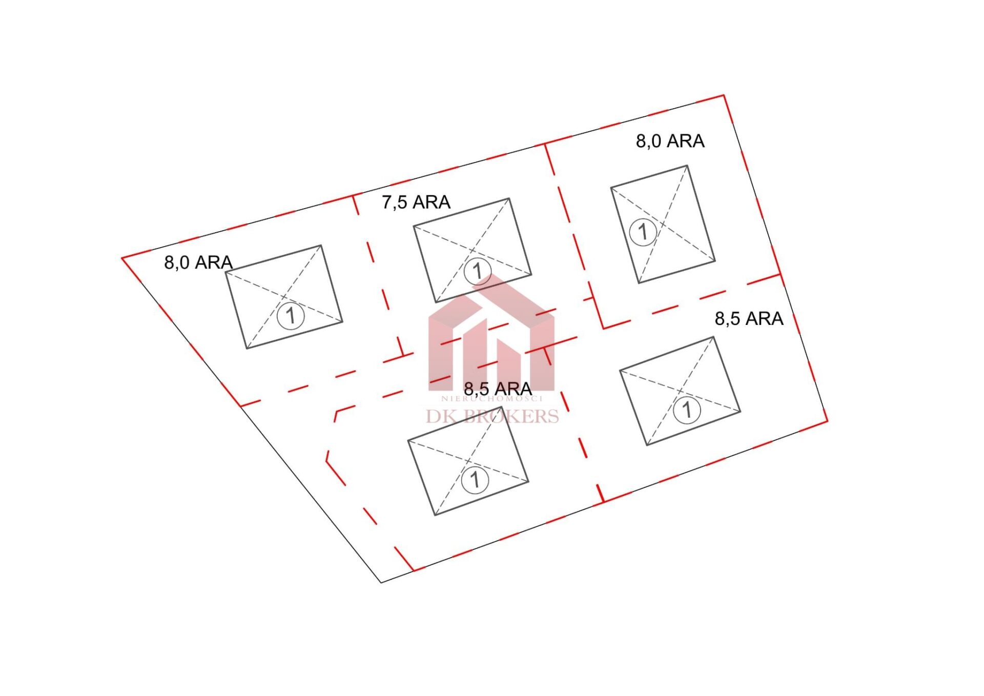 – Idealne wymiary – każda działka o szerokości 34 m i długości 25 m,