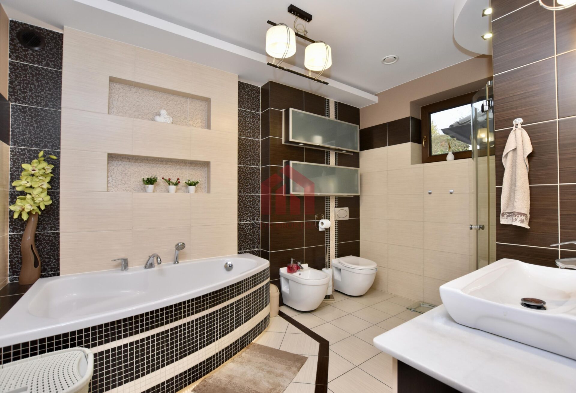Dom wykończony w bardzo wysokim standardzie, przy zastosowaniu materiałów najwyższej jakości.
