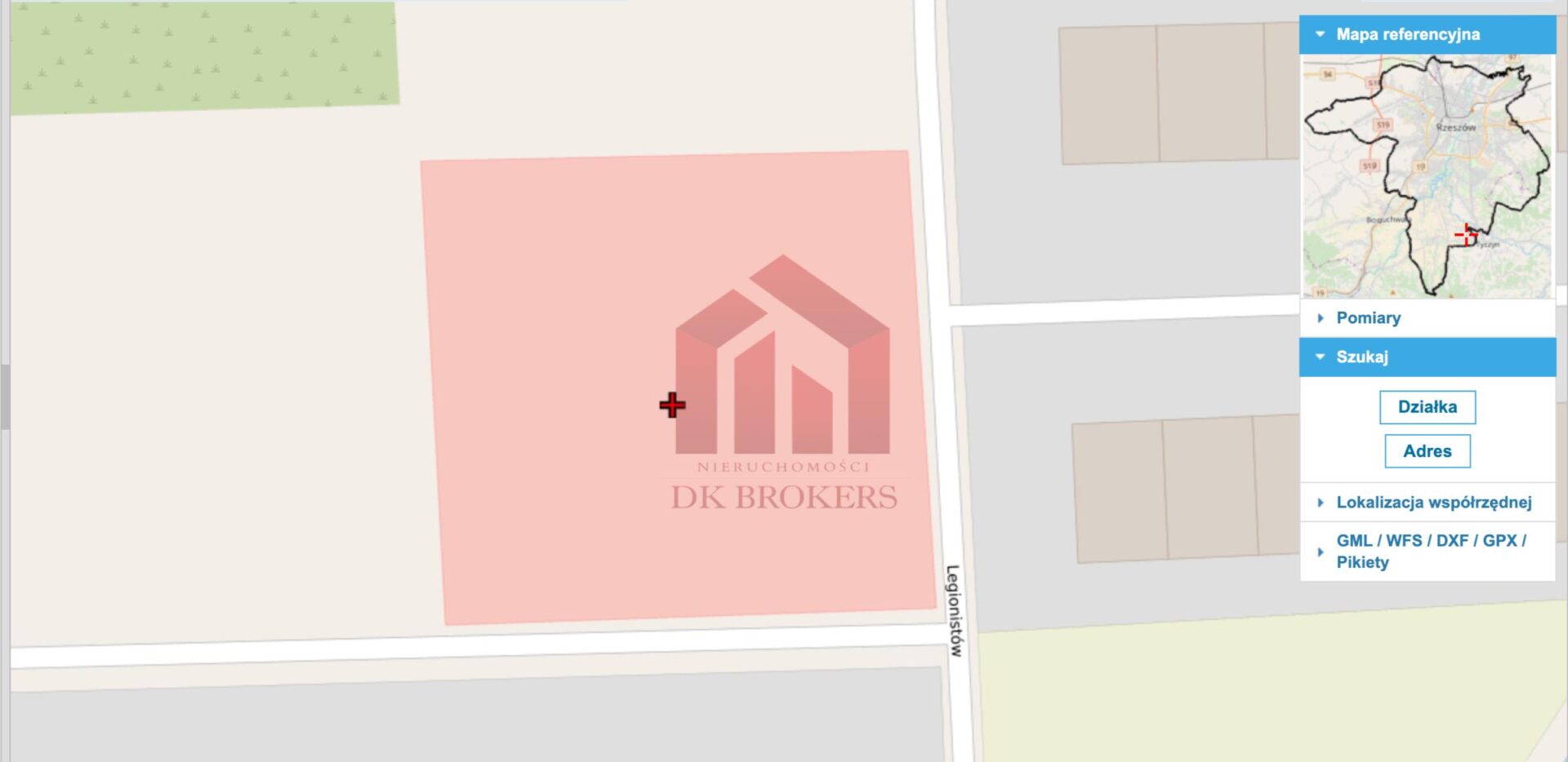 Działka znajduje się w Rzeszowie w dzielnicy Budziwój przy ul. Legionistów. W sąsiedztwie domy jednorodzinne.